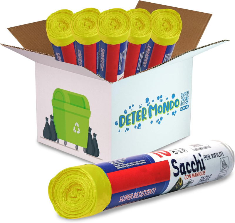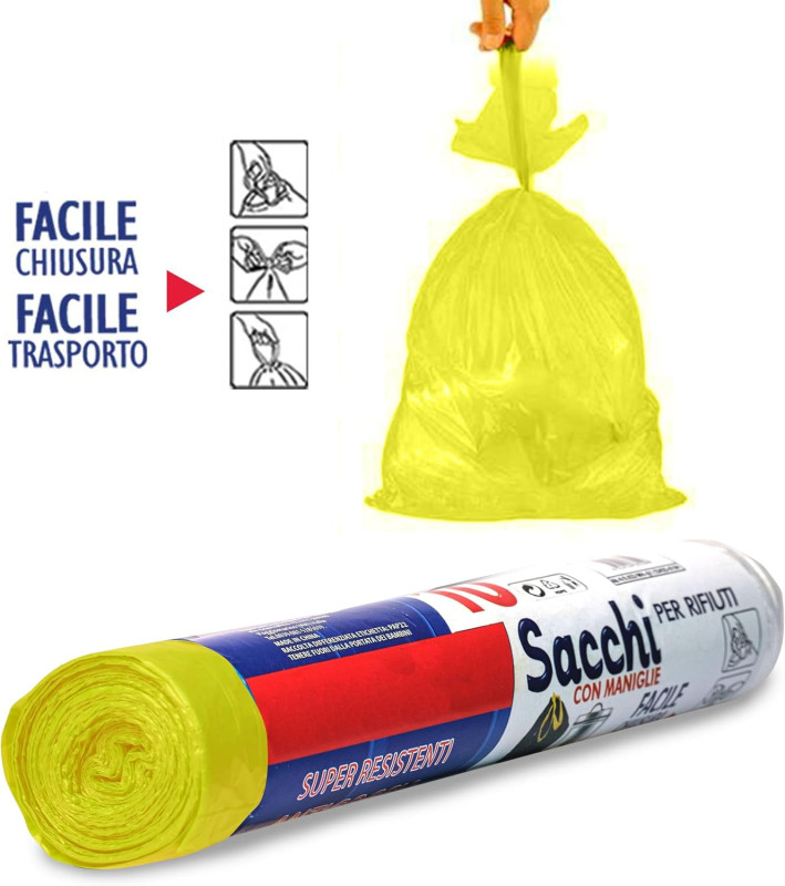 🚚 ORDINE - Riceverai sacchi spazzatura di colore giallo misura 70x110 cm Super Resistenti da 110 Litri in confezione di Rotoli da 10 Pezzi. ✅ SUPER RESISTENTI - le nostre buste spazzatura grazie alla ottima qualità del materiale di produzione ecosostenibile garantiscono la resistenza alla rottura e alla fuoriuscita di liquidi così da essere sicuri durante il trasporto dei tuoi rifiuti. 🔝QUALITY - I sacchi immondizia Determondo Made in Italy sono formati in materiale LDPE che permette ai sacchetti di essere riciclabili,resistenti, elastici. 📦UTILIZZO - i nostri sacchi vengono utilizzati, grazie alla loro grande capacità e resistenza, per la raccolta differenziata dell'immondizia che si produce a casa, comodi, pratici, sicuri e resistenti! 📖NORMATIVE- I nostri sacchetti immondizia rispettano tutte le normative dei comuni , da oggi potrai smistare i rifiuti nella totale sicurezza e tranquillità e in particolar modo nel rispetto delle leggi.